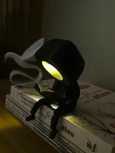 - Design Minimalista: A silhueta do candeeiro representa um leitor, trazendo um toque artístico ao seu espaço.